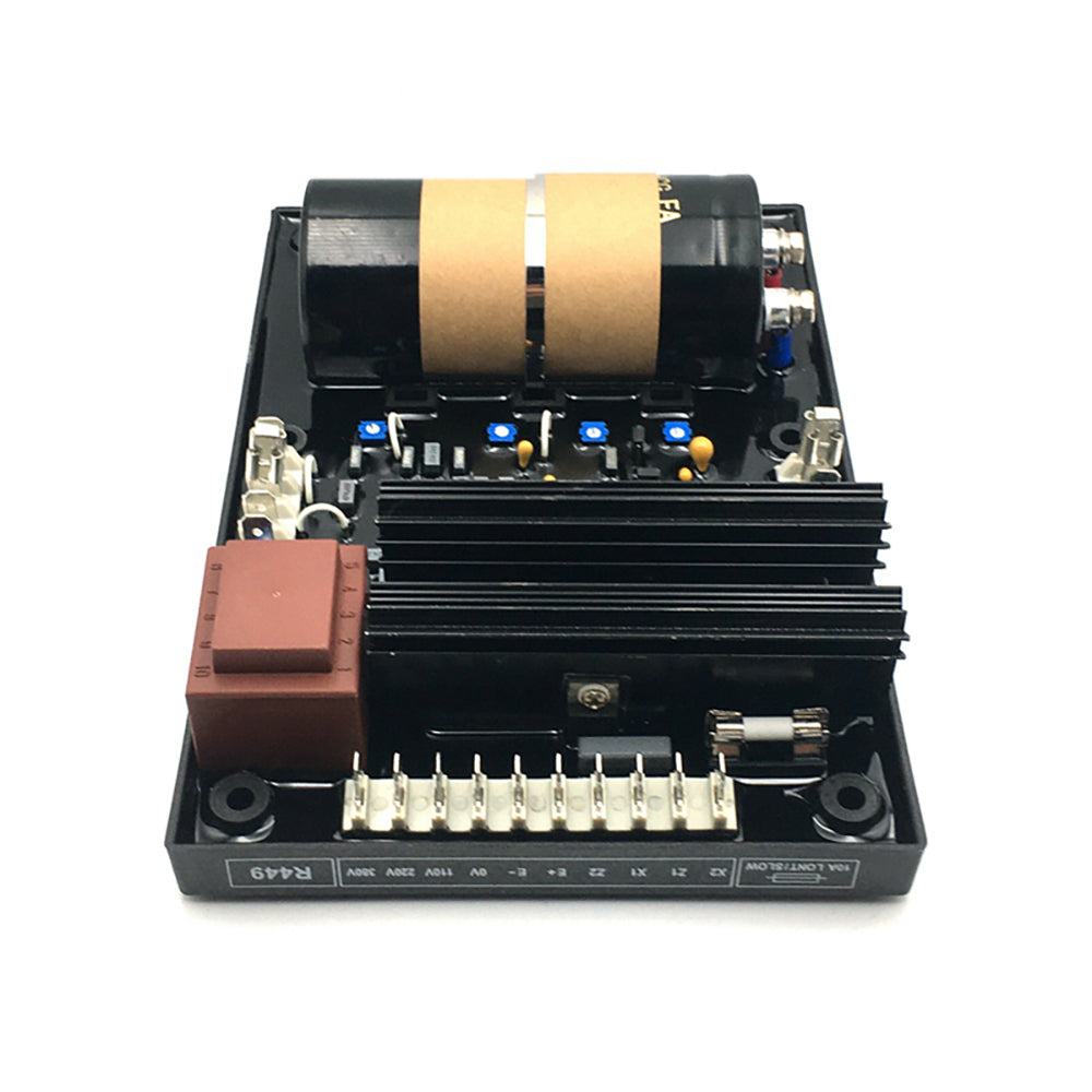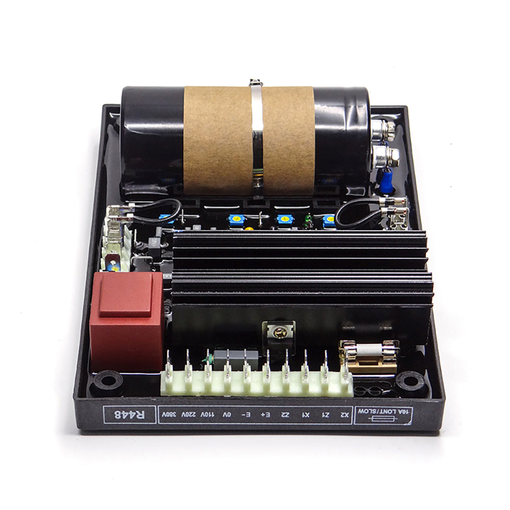 150kva AVR Automatic Voltage Regulator AVR R448 is a half-wave phase controlled thyristor type Automatic Voltage Regulator and forms part of the excitation system for a brushless generator. In addition to regulating the generator voltage, the AVR circuitry includes under speed and sensing loss protection to ensure safe, reliable control of the generator. Positive voltage build up from residual levels is ensured by the use of proficient semiconductors in the power circuitry of the AVR. Which is linked with the main stator windings and the exciter field windings to offer closed loop control of the output voltage with load regulations of +/- 1.5%