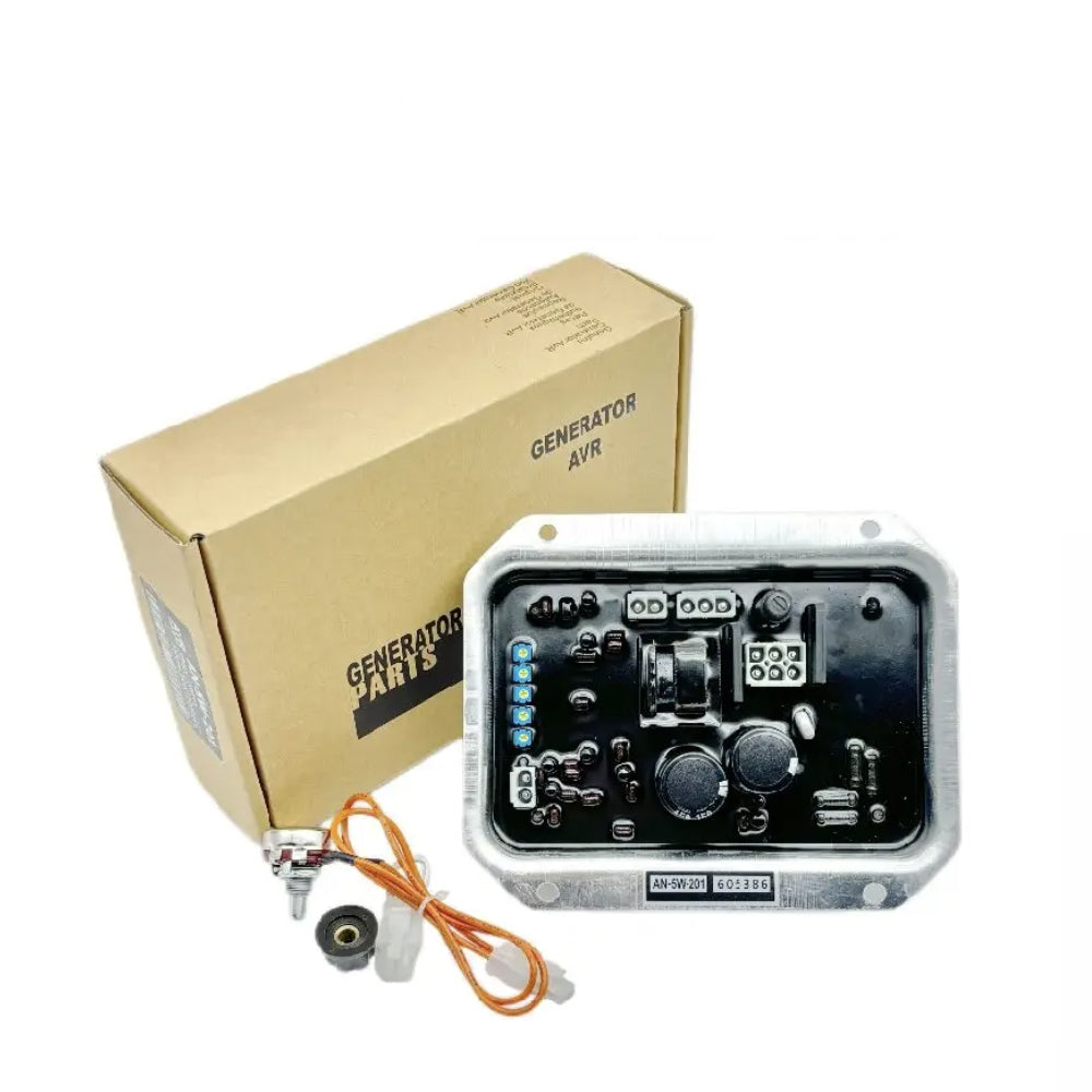 Generator AVR AN-5W-201 for original Generator china replaced is a half-wave phase controlled thyristor type Automatic Voltage Regulator and forms part of the excitation system for a brushless generator. In addition to regulating the generator voltage, the AVR circuitry includes under speed and sensing loss protection to ensure safe, reliable control of the generator. Positive voltage build up from residual levels is ensured by the use of proficient semiconductors in the power circuitry of the AVR. Which is linked with the main stator windings and the exciter field windings to offer closed loop control of the output voltage with load regulations of +/- 1.5%.