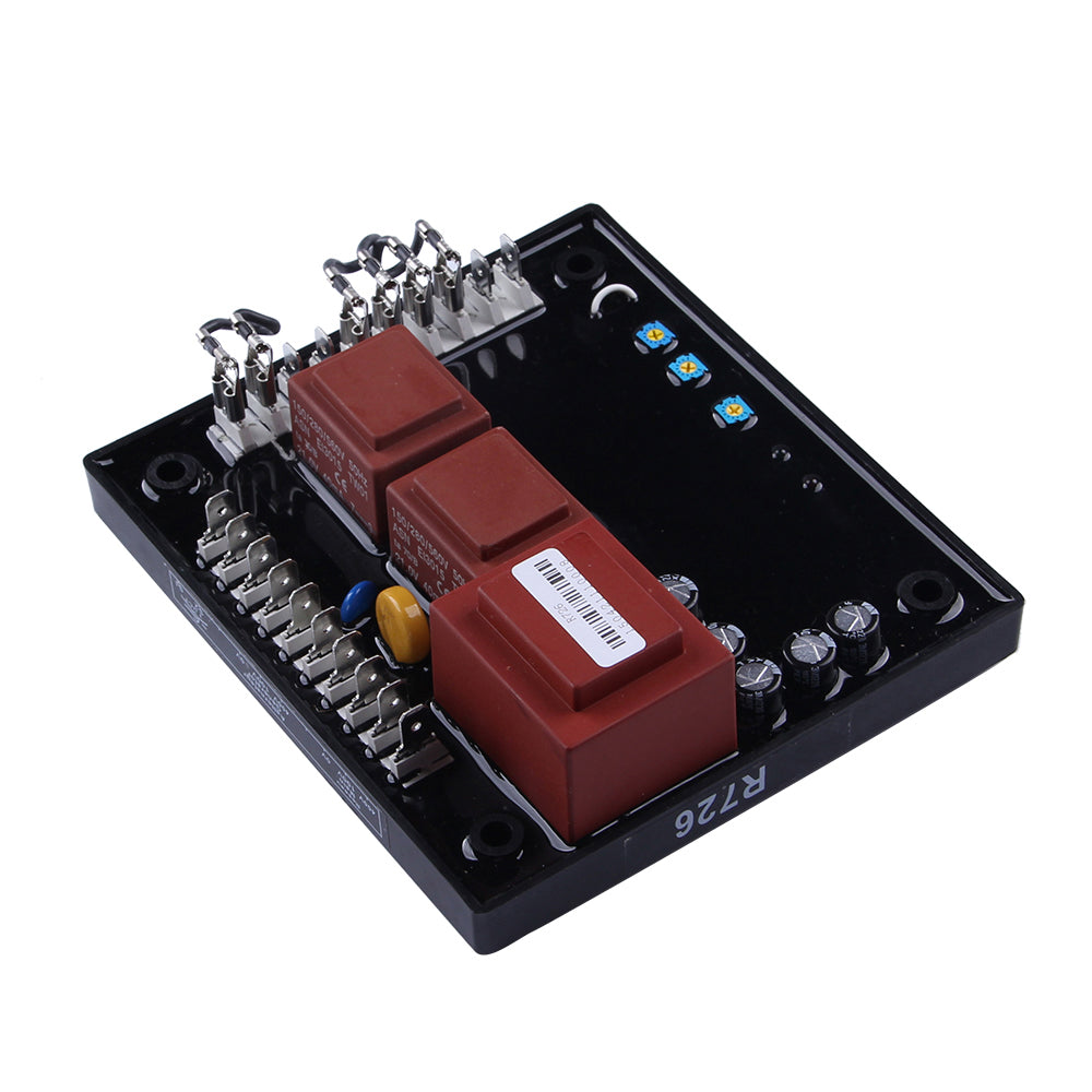 Diesel Brushless Generator Automatic Voltage Regulator AVR R726 is a half-wave phase controlled thyristor type Automatic Voltage Regulator and forms part of the excitation system for a brushless generator. In addition to regulating the generator voltage, the AVR circuitry includes under speed and sensing loss protection to ensure safe, reliable control of the generator. Positive voltage build up from residual levels is ensured by the use of proficient semiconductors in the power circuitry of the AVR. Which is linked with the main stator windings and the exciter field windings to offer closed loop control of the output voltage with load regulations of +/- 1.5%
