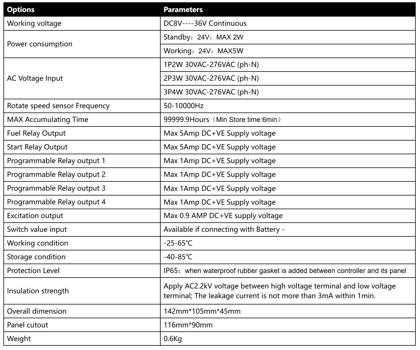 This series controller is specialized for Diesel / Gasoline / Gas Genset Start, Stop, Parameters monitoring, faults-checking as well as data setting.