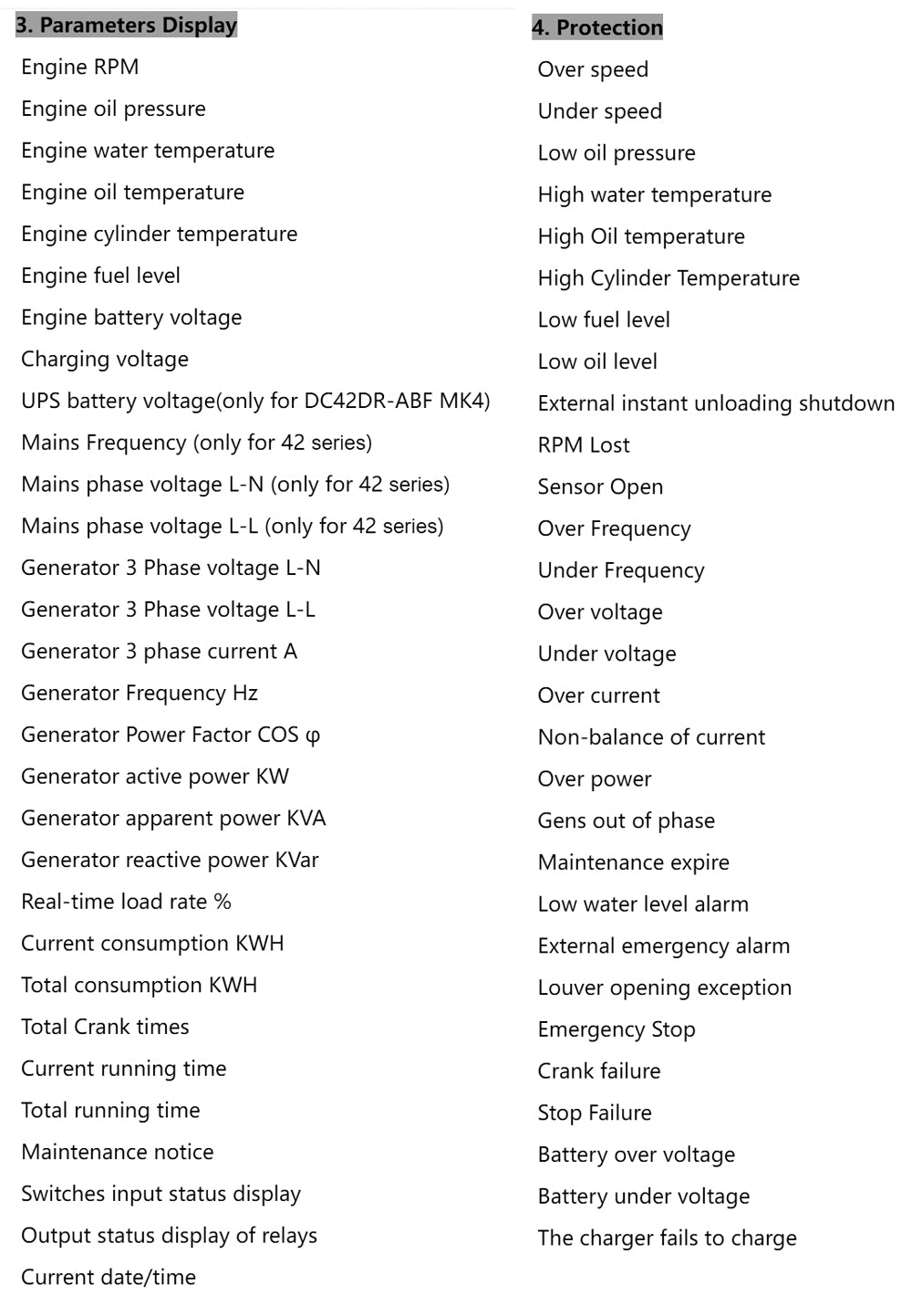 This series controller is specialized for Diesel / Gasoline / Gas Genset Start, Stop, Parameters monitoring, faults-checking as well as data setting.