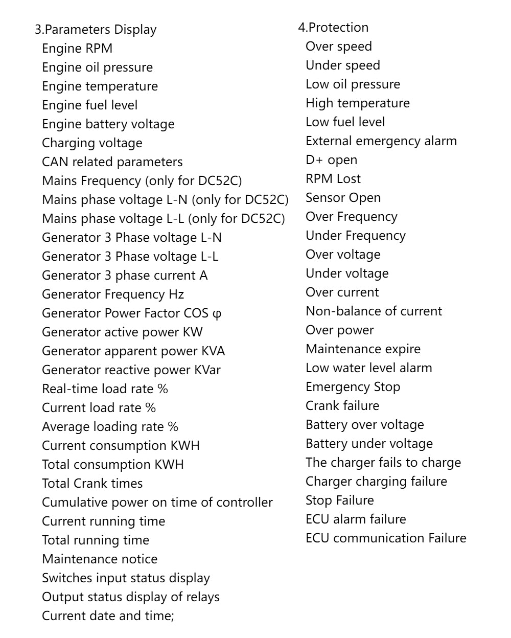 This series controller is specialized for Diesel / Gasoline / Gas Genset Start, Stop, Parameters monitoring, faults-checking as well as data setting.